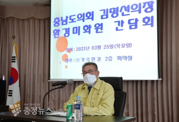 김 의장은 이날 간담회 전 당진 송산 제2일반산업단지 산업폐기물 처리시설을 시찰하고 처리 과정에서 주민 건강과 환경에 피해가 없도록 각별한 주의를 당부했다.