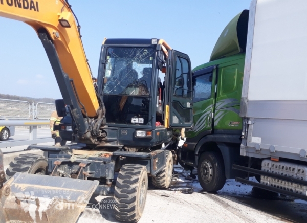 이 사고로 트럭운전자 A씨(60대), 굴삭기 운전자 B씨(50대)가 각각 경상을 입어 인근 병원으로 옮겨져 치료를 받고 있다.