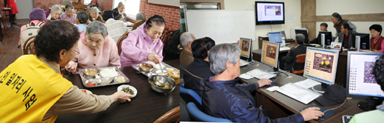 ▲ 노인복지 서비스로 무료급식과 컴퓨터교육 실시