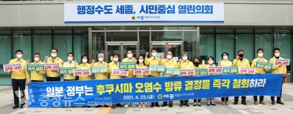 세종시의회, "일본 후쿠시마 원전 오염수 해양 방류 철회 하라"