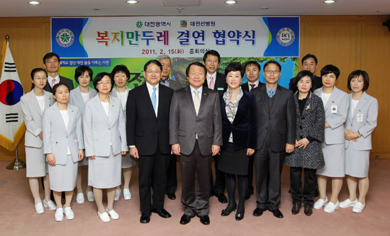 대전광역시(시장 염홍철)는 15일 오후 시청 중회의실에서 염홍철 대전시장과 선승훈 영훈의료재단 대전선병원 의료원장 등 관계자가 참석한 가운데 ‘복지만두레 결연사업 협약식’을 갖고 시민의 건강관리에 적극 동참하기로 했다.