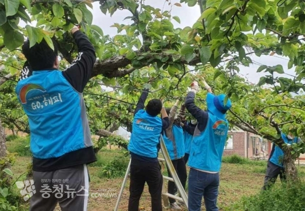 충남지역본부(본부장 안중식)는 4일 논산시 광석면에서 배 재배 농가를 방문하여 열매솎기 농촌일손돕기 봉사활동을 펼쳤다.