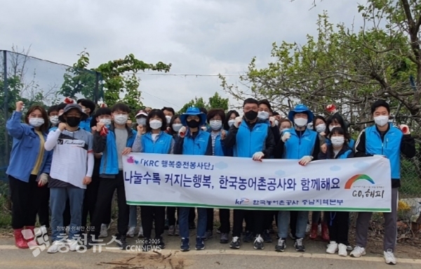 충남본부는 이번 일손돕기를 시작으로 ‘농촌집고쳐주기’, ‘자살예방활동’ 등 사회공헌활동을 이어가며 ESG 경영(환경·사회·지배구조로 기업의 비재무적 요소)에 앞장서고 있다.