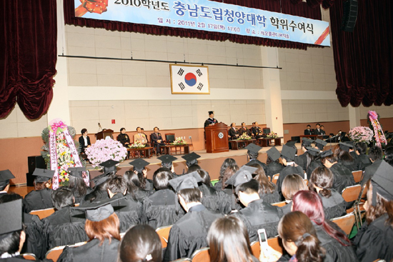 충남도립청양대학(총장 최석충)은 17일 해오름관에서 안희정 도지사, 유병기 도의회 의장, 도의원, 이석화 청양군수, 학부모 등 1,000여명이 참석한 가운데 제12회 학위수여식을 개최했다.