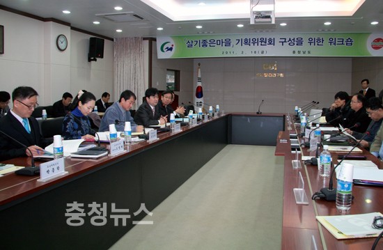 충남도는 18일 충남발전연구원에서 김종민 정무부지사 주재로 '살기좋은마을'관계자 45명(전문가 15명, 교수3, 공무원 27명)이 참석한 가운데 민선5기 10대 전략과제인 충남형 '살기좋은마을' 사업을 위한 기획위원회구성과 향후 추진방안을 논의했다.