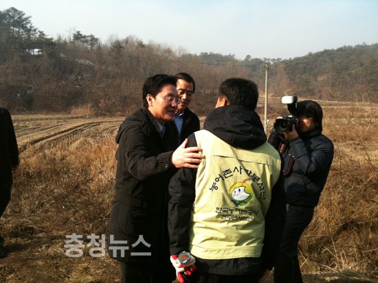 ▲ 정두원 최고위원과 홍문표 사장이 홍성군내 농가 현장 방문