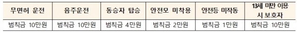 이번 개정에서 가장 크게 변경된 점은 새롭게 개정된 도로교통법을 위반할 경우 최대 10만 원의 범칙금이 부과된다는 점이다.
