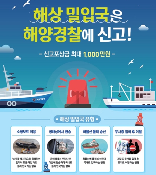 최대 1천만원 지급, 각종 밀입국 신고요령 등을 담은 홍보물 연안지역 중심 배포