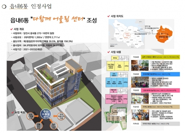 ‘주민참여형 도시재생 뉴딜사업’에 대해서는 현재 당진1·2동 도시재생 뉴딜사업과 읍내6통 도시재생 인정사업이 추진 중이고 올해 합덕읍 운산리와 신평면 거산리 일원의 사업계획을 수립해 국토부와 충청남도에 공모를 신청했으며, 2022년 이후에는 원도심 내 생활 SOC 시설을 확충 및 지역자원 활용을 통해 경제적, 사회적, 물리적, 환경적 도시재생 활성화를 도모할 계획이라고 설명했다.