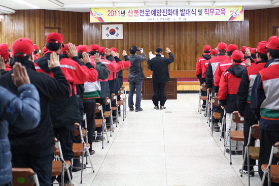 이날 발대식에서 전문예방진화대원 38명, 산불감시기동대42명, 관련 공무원 20명 등 100여명은 “2011 봄철 산불방지 기간을 맞아 산불로부터 소중히 가꾼 산림은 우리가 지킨다”는 굳은 각오로 결의를 다졌다.