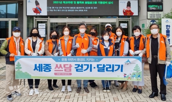 세종특별자치시 한솔동(동장 김선호)이 한솔동 주민자치회(회장 안신일)와 함께 지난 26일 국토대청결운동의 일환으로 쓰레기를 주워 담으며 걷고 달리는 ‘쓰담 걷기·달리기’캠페인을 실시했다.