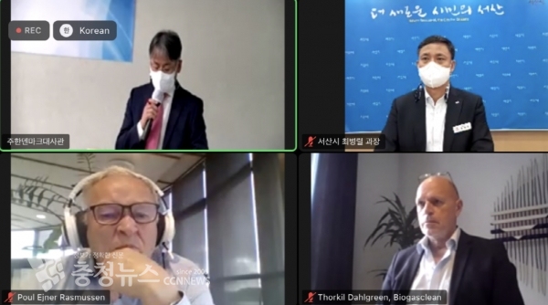 서산시는 한국환경공단과 주한덴마크대사관 주관하고 환경부 후원으로 27일 개최되는 P4G 서울정상회의 연계 행사 비대면 화상회의 패널토론에 서산시 환경생태과장 최병렬이 참석해 우수 사례로 서산시 자원순환형 바이오가스화시설을 소개했다.