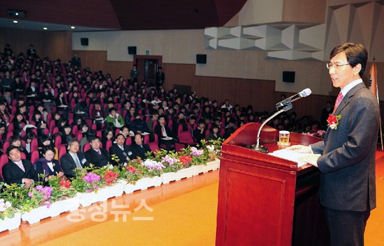 안희정 충남도지사는 28일 오전 건양대학교 콘서트홀에서 2011년 신입생․교직원 등 900여명을 대상으로 ‘미래는 변화를 대비하는 자의 몫’이란 주제로 특강을 실시했다.