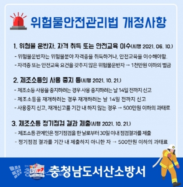 서산소방서, 2021년 달라지는 위험물안전관리법