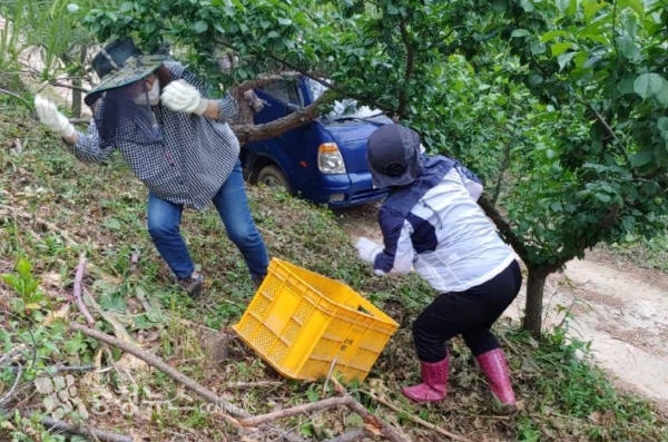 소정면, 고등리 농가 찾아 매실수확 등 농촌일손돕기 추진