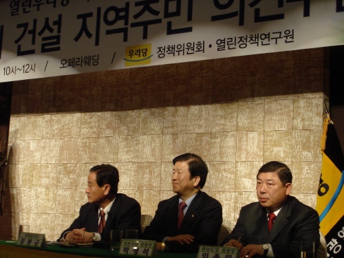 김한길 원내대표도 "첫번째 '정책데이트' 행사를 대전에서 갖는 것은 행복도시를 착오없이 추진하고 실천하겠다는 참여정부와 우리당의 의지를