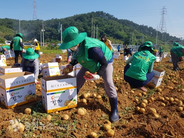 충남 서산시 성연면 새마을남녀지도자협의회가 지난 21일 회원 40여 명이 참여한 가운데 평리일원 400평 규모의 밭에서 감자 캐기를 실시했다.