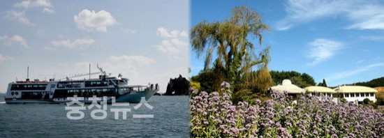 ▲ 유람선 관광 모습(왼쪽)과 천리포수목원(오른쪽) 모습