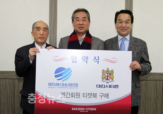 버스운송사업조합 김광철 이사장은 “대전시티즌이 활기가 넘치는 대전을 만들어가고 축구를 통해 지역의 명성을 떨치길 기대한다. 대중교통을 이용해 많은 시민들이 축구관람을 즐겼으면 좋겠다”고 밝혔다.