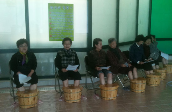 대전 중구(구청장 박용갑)는 23일 효문화마을을 활성화 하고 어르신들에게 건강한 노후를 선사하기 위해 효문화마을관리원에서 ‘아로마 족욕 체험프로그램’을 가졌다.