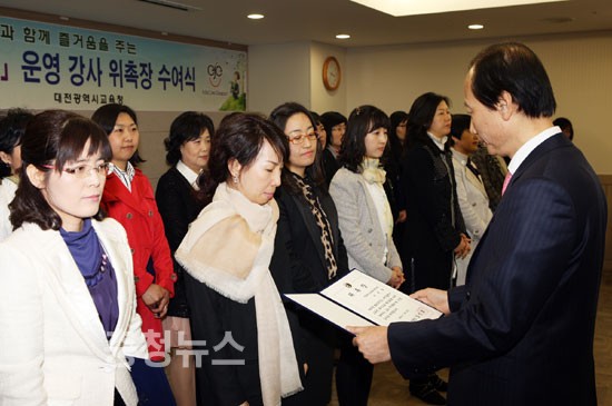 대전시교육청(교육감 김신호)은 23일 저소득층 및 맞벌이 가정의 ‘나 홀로 아이’에게 아름다운 심성과 정서, 자신감을 심어주기 위해 「찾아가는 토요 책사랑의 날」강사 20명을 위촉하였다.