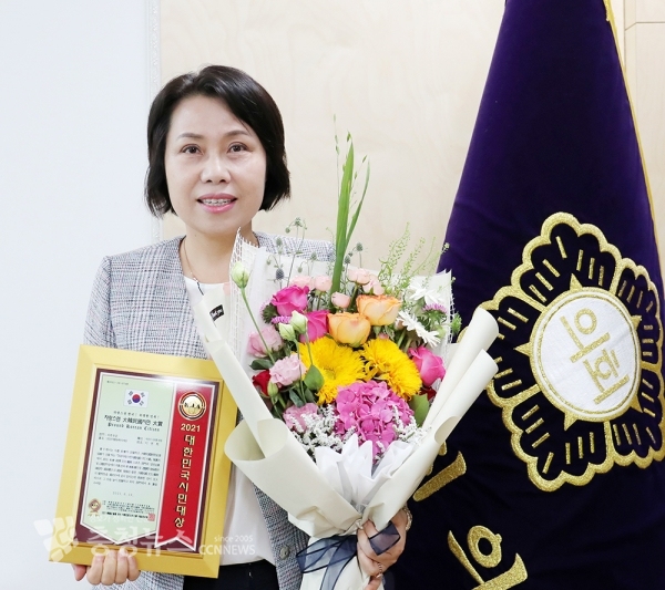 이 의장은 여성 정치인으로서 시민들과의 격의 없는 소통을 통해 시민 복리증진과 지방의회 발전에 기여한 공로를 인정받아 이번 수상의 영예를 안게 됐다.