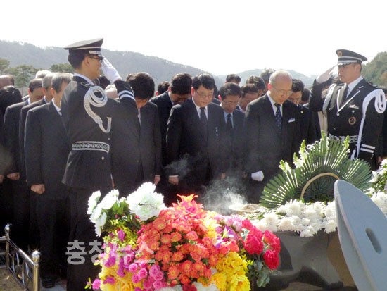 박성효 최고위원 비롯 당직자 100여명 참석 참배 및 추모 한나라당 대전·충남도당은 25일 천안함 46용사 1주기와 관련하여 국립대전현충원을 방문해 묘역을 참배했다. ▲ 한나라당 대전·충남 당직자 100여명이 참석하였다. 이날 행사에는 박성효 한나라당 최고위원을 비롯하여 대전·충남 당직자 100여명이 참석하였다. 현충탑 참배로 시작한 이날 행사는 사병3묘역에 안치된 천안함 46용사의 묘역과 古 한주호 준위 묘역을 찾아 넋을 기리는 등 국가를 위해 희생한 고인의 숭고한 뜻을 가슴깊이 되새기는 시간을 가졌다. ▲ 현충탑 참배 모습. 저작권자 © 충청뉴스 무단전재 및 재배포 금지 이재용 기자 다른기사 보기 기사가 마음에 드셨나요? 충청뉴스 좋은 기사 후원하기 1,000원 3,000원 5,000원 10,000원 30,000원 50,000원 직접입력 비회원 약관동의하기 ※ 소중한 후원금은 더 좋은 기사를 만드는데 쓰겠습니다.