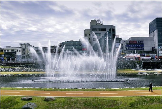 지난해 8월 완공된 음악분수 주변은 산책로와 징검다리는 물론 사랑의 의자・자물쇠, 동전던지기, 탁족시설 등 시민들로 부터 많은 사랑을 받는 공간이다.