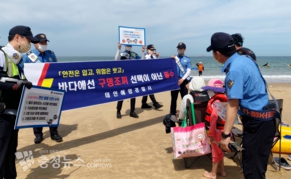 성창현 태안해경서장은 “마스크 착용 등 코로나19 개인 방역수칙 준수와 함께 바다활동에는 생명조끼인 구명조끼 착용으로 안전하고 즐거운 여름휴가 보내기에 적극 동참해 줄 것”을 당부했다.