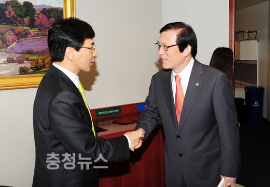 ▲ 안희정 충남지사가 얼바인시 강석희 시장을 만나고 있다.