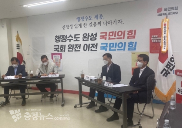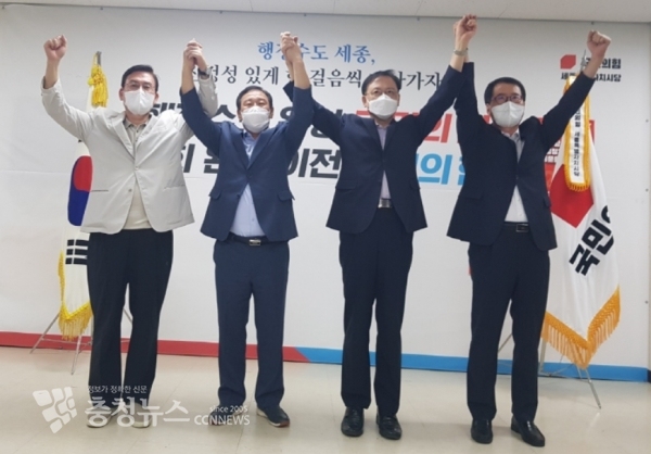 국민의힘 충청권시도당(대전,세종,충남,충북도당)은 10일(화) 오후 4시 세종시당 당사에서 ‘충청대세(忠淸大勢)’ (국민의힘 충청남,북도,대전,세종시당위원장협의회) 발족을 갖고, 국토균형발전을 위해 충청권 메가시티를 조속히 조성하여 충청권의 상생발전과 지방 경쟁력 강화 등 자족기능 확충을 통한 지역의 미래 경쟁력 강화 등의 노력에 함께 최선의 노력을 할 것을 결의했다.