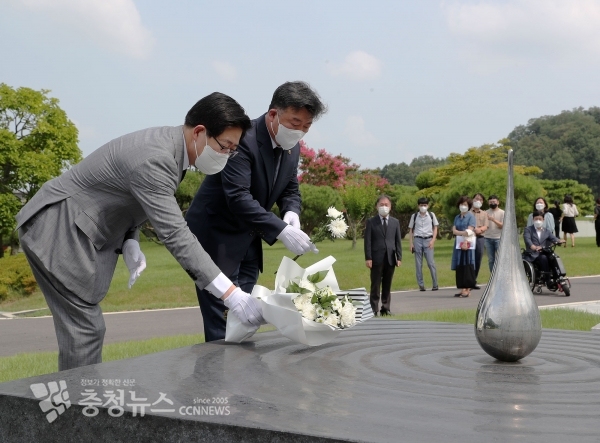 "할머니들 외침 잊지 말아야" 양승조, 국립 망향의 동산 참배