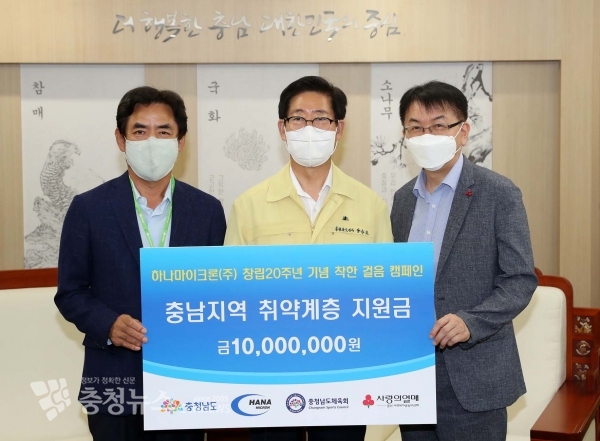 도는 전달받은 성금 1000만 원을 충남사회복지공동모금회를 통해 도내 취약계층 지원에 활용할 계획이다.