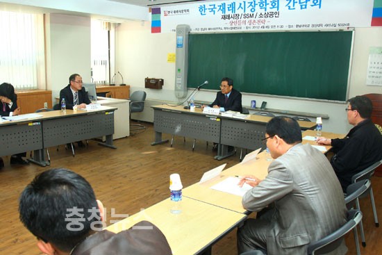 최근 기업형 슈퍼마켓(SSM) 입점 분쟁이 사회적 문제로 떠오르는 가운데 한국재래시장학회(회장 이덕훈, 한남대 교수)는 8일 한남대 경상대 세미나실에서 재래시장과 소상공인의 생존방안을 주제로 간담회를 개최했다.