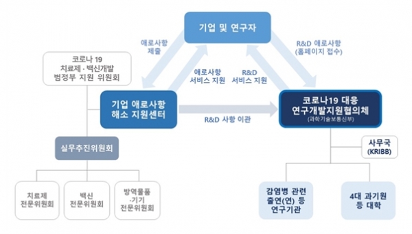 < 코로나19 대응 연구개발지원협의체 체계도>