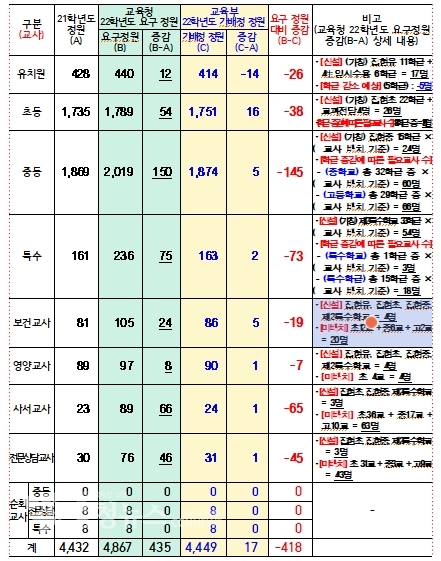 이와함께 "시교육청은 앞으로 초등학교 학생 수가 줄어들 것이므로 기간제교사로 메꾸고 버티라는 기재부, 행안부, 교육부의 교사정원 감축정책에 동의할 수 없다"고 밝혔다.