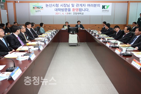 황명선 논산시장은 지난 13일 지역과 대학간의 상생발전을 위해 건양대학교에서 관ㆍ학 간담회를 가졌다.