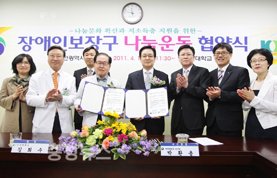 대전시 서구(구청장 박환용)는 18일 건양대학교(총장 김희수)와 저소득지원을 위한 「장애인보장구 나눔운동」 협약식을 가졌다.