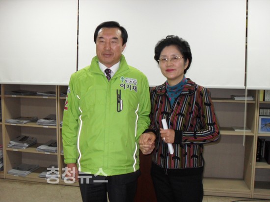 김세호 前 태안군수의 부인 신은애씨가 19일 기자회견을 갖고 민주당 이기재 후보를 지원하기로 하면서 태안군수 재선거 판도가 커다란 전환점을 맞았다.