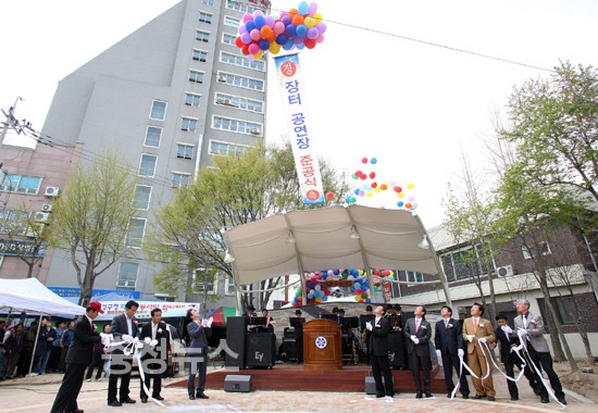 ‘전통5일장과 예술의 만남’이란 프로젝트로 추진된 문화공연장 설치는 지난 1월에 착공하여 3개월간의 공사기간을 거쳐 야외무대 구조물 35㎡, 연단 40㎡, 마당놀이장 100㎡규모로 완성되었다.