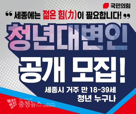 국민의힘 세종특별자치시당(위원장 최민호) 청년위원회는(위원장 장원혁) 13일 “세종시의 젊은 민심을 대변할 청년대변인 2명을 선발한다”고 밝혔다.