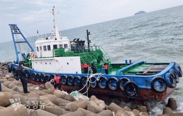 21일 추석 당일 새벽 1시 13분쯤 충남 태안군 근흥면 부억도 인근 방파제에 69 톤급 예선(曳船) A호가 좌초(坐礁)됐다.