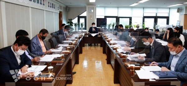 이날 의원회의 집행부 주요 안건으로는 오는 9월 29일 개최되는 제232회 임시회를 앞두고 △신창 일반산업단지 업무협약 체결(미래전략과) △2021년 「사회적경제기업 청년도제 육성 사업」 변경 내시에 따른 성립전 예산 사용(안)(사회적경제과) △지역균형뉴딜 우수사업 선정에 따른 성립전 예산 사용(안)(사회적경제과) △2021년「마을공방 육성사업」선정에 따른 성립전 예산 사용(안)(사회적경제과) △일자리공시제 인센티브 성립전 예산 사용(사회적경제과)
