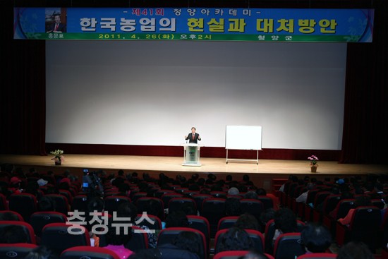 홍문표 사장은 26일 청양군을 방문 청양문예회관 대공연장에서 시민, 공직자, 농업인 등 1천여명이 참석한 가운데 ‘한국농업의 현실과 대처방안’이라는 주제로 특강을 실시 했다.