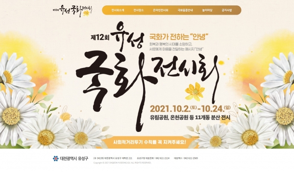 보다 많은 주민들이 더욱 안전하고 편리하게 ‘제12회 유성 국화전시회’를 즐길 수 있도록 분산전시되는 국화전시회장을 담은 국화전시회 홈페이지(http://유성국화전시회.kr)도 정비했다.