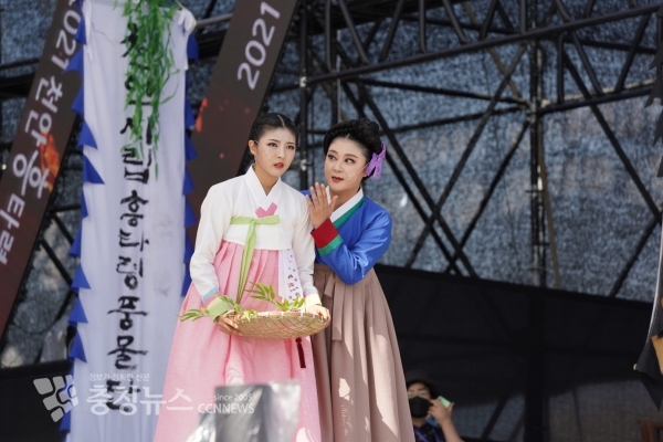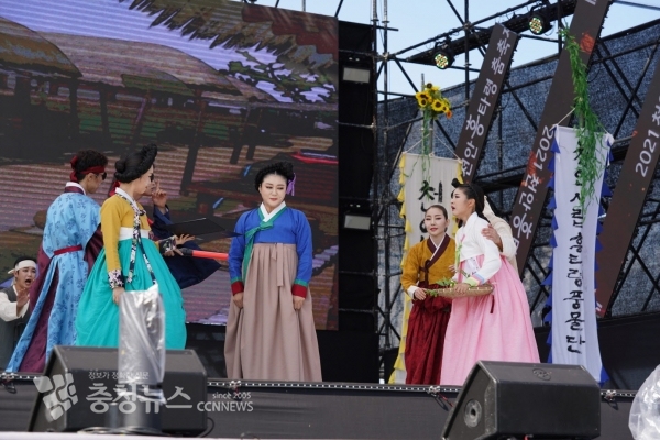 '천안흥타령춤축제 2021'이 천안삼거리공원에서 개막 2일차 30일 마당음악극 '능소' 공연이 펼쳐져 시민들로 부터 큰 호응을 얻었다.