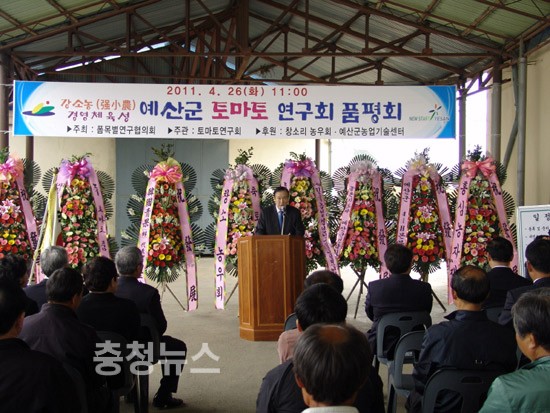 최승우 예산군수는 인사말에서 “오늘 품평회가 명품토마토의 경쟁력 제고와 고부가가치 농업창출의 새로운 돌파구로써 좋은 결실을 맺는 출발점이 되기를 바라며 고품질 명품농산물 생산기반 확대 구축을 위한 기술적, 행정적 지원에 최선을 다할 것이다”라고 말했다.