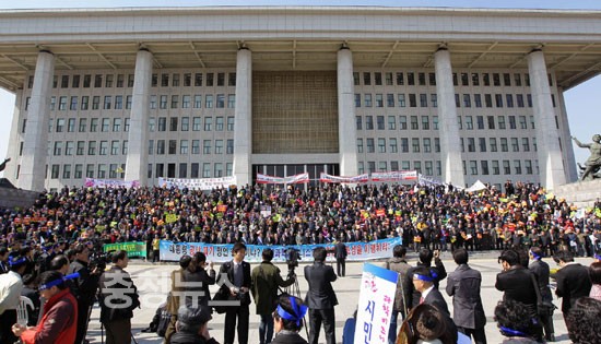 ▲ 지난 3월 23일 국회에서 열린 국제과학비즈니스벨트 충청권사수 결의대회」