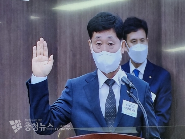 12일 오전 국가철도공단 본사에서 열린 국회 국토교통위원회 한국철도공사, 국가철도공단, 에스알 국정감사에서 정왕국 한국철도공사 사장이 선서를 하고 있다.