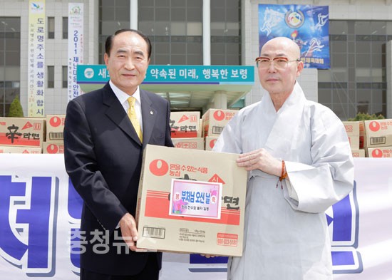 충남 보령시(시장 이시우) 청라면 소재 천수암(주지 일정스님)에서는 지난 3일 불자 10여명과 함께 보령시를 방문해 사회적 배려가 필요한 저소득 가구에 전달해 달라며 라면 300상자를 기탁했다.